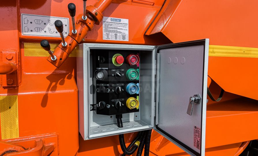 Основной бункер разгружается выталкивающей плитой после поднятия заднего борта. Операция осуществляется при помощи рычагов расположенных за кабиной. В процессе разгрузки применяются кнопка «подгазовки» и кнопка «одиночного цикла», необходимая для разгрузки мусора из загрузочного бункера при поднятом загрузочном бункере.